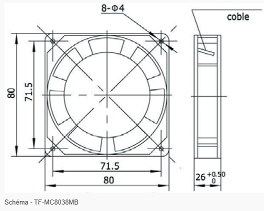 Ventilateur axial compact TF-MC8038MB - 80 X 80 X 26 mm